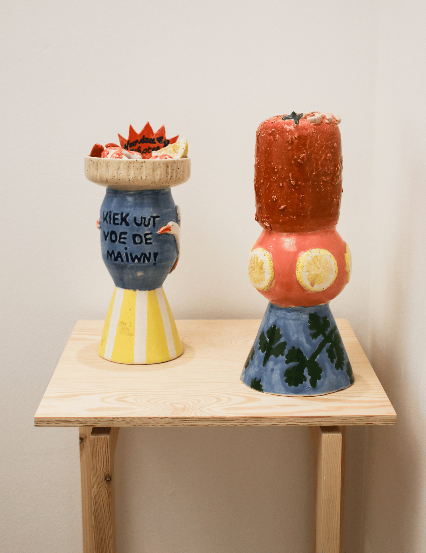 Na de workshop worden de vazen bisque- en glazuurgebakken in het atelier.